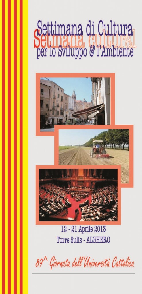 Domenica 21 aprile 2013, nell’ambito delle manifestazioni per la “Settimana di Cultura per lo Sviluppo e l’Ambiente”, nella città di Alghero a Torre Sulis verrà presentato il Rapporto Giovani dell’Istituto Toniolo in occasione della Giornata per l’Università Cattolica. Interverranno: – Giuseppe Patta, segretario nazionale del Movimento Lavoratori di Azione Cattolica e direttore dell’ufficio per i […]