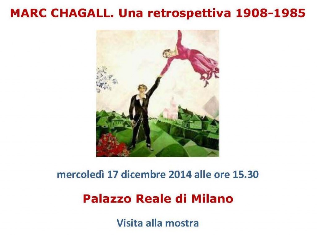 In occasione della mostra “Marc Chagall. Una retrospettiva 1908-1985” a Palazzo Reale, la Delegazione diocesana di Milano dell’Università Cattolica organizza una visita per mercoledì 17 dicembre 2014 alle ore 15.30. I posti sono limitatissimi, occorre dare l’adesione entro e non oltre le ore 16.00 di venerdì 28 novembre, telefonando al n. 0272342824 oppure scrivendo una […]