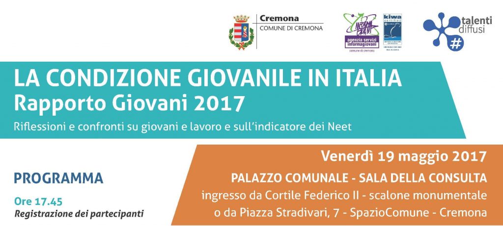 Venerdì 19 maggio 2017 presso la Sala della Consulta del Palazzo comunale di Cremona è in calendario il seminario “La condizione giovanile in Italia. Riflessioni e confronti su giovani e lavoro e sull’indicatore dei Neet”, promosso dal Comune di Cremona in collaborazione con InformaGiovani e Talenti diffusi. Introduce i lavori Mara Ruggeri, vice Sindaco di […]
