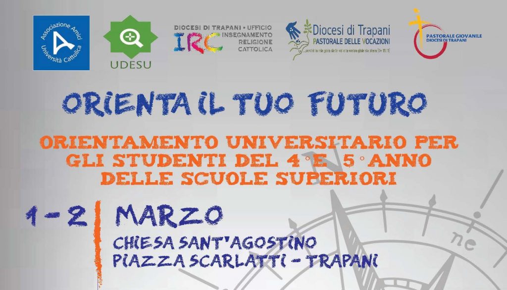 La scelta universitaria è una porta aperta sul futuro: a Trapani gli studenti di IV e V superiore si sottoporranno a test psicoattitudinali per una profilazione personalizzata e conosceranno l’offerta formativa dell’Università Cattolica, anche incontrando giovani laureati. L’iniziativa è promossa dalla Diocesi di Trapani in collaborazione con l’Associazione Amici dell’Università Cattolica. Locandina