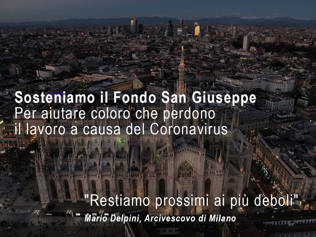 La Diocesi di Milano, in collaborazione con il Comune di Milano, ha istituito il “Fondo San Giuseppe” per aiutare chi perde il lavoro a causa del Coronavirus. L’intenzione è quella di « esprimere la nostra prossimità e offrire un pronto soccorso a coloro che a causa della epidemia in atto non hanno alcuna forma di sostentamento […]